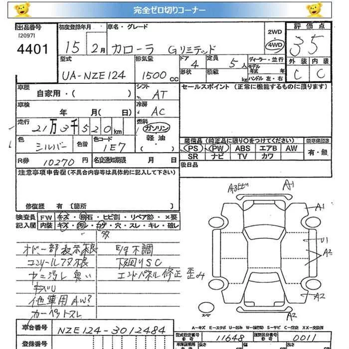 Toyota COROLLA с аукциона Японии JU Miyagi лот № 4401