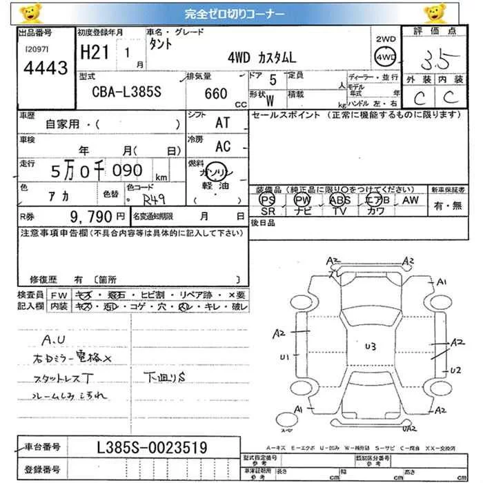 Daihatsu TANTO с аукциона Японии JU Miyagi лот № 4443