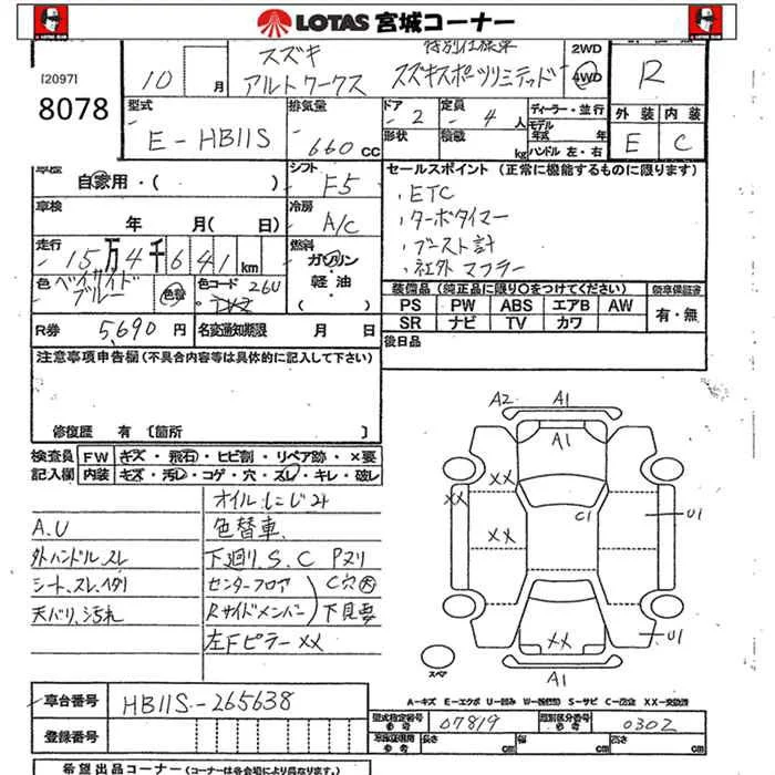 Suzuki ALTO с аукциона Японии JU Miyagi лот № 8078