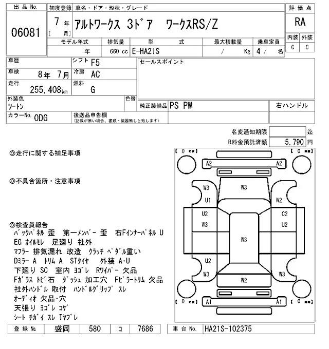 Suzuki ALTO с аукциона Японии ARAI Sendai лот № 6081