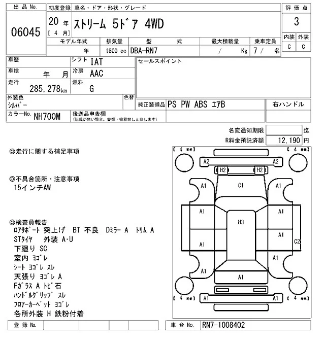 Honda STREAM с аукциона Японии ARAI Sendai лот № 6045