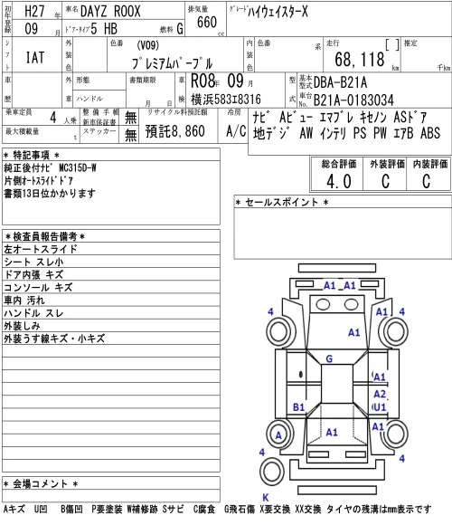Nissan DAYZ ROOX с аукциона Японии NAA Tokyo лот № 3009