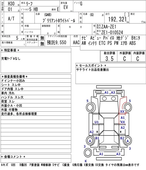 Nissan LEAF с аукциона Японии NAA Tokyo лот № 6712