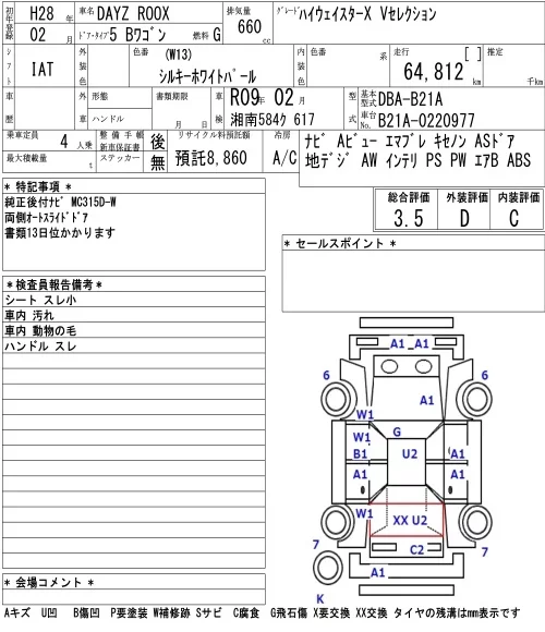 Nissan DAYZ ROOX с аукциона Японии NAA Tokyo лот № 3067