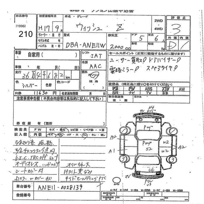 Toyota WISH с аукциона Японии JU Okinawa лот № 210