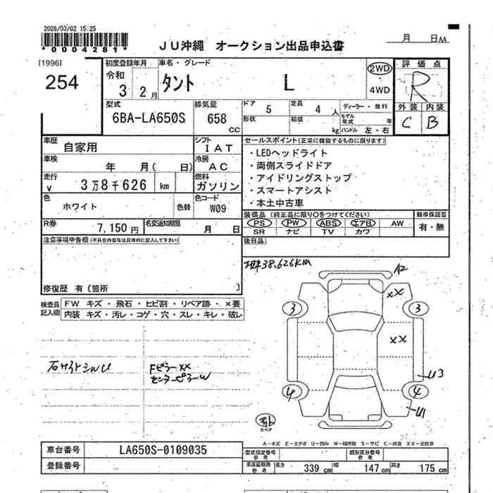 Daihatsu TANTO с аукциона Японии JU Okinawa лот № 254