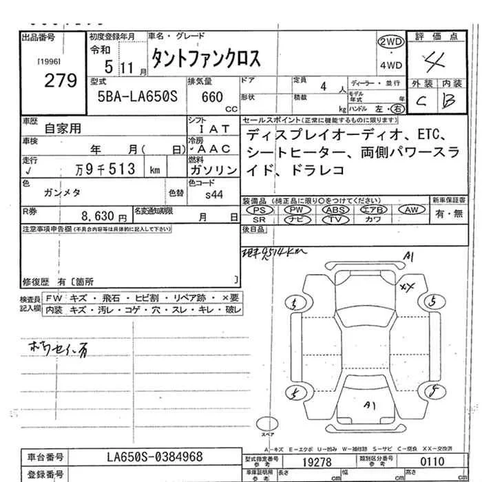 Daihatsu TANTO с аукциона Японии JU Okinawa лот № 279