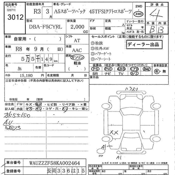 Audi A5 с аукциона Японии JU Niigata лот № 3012