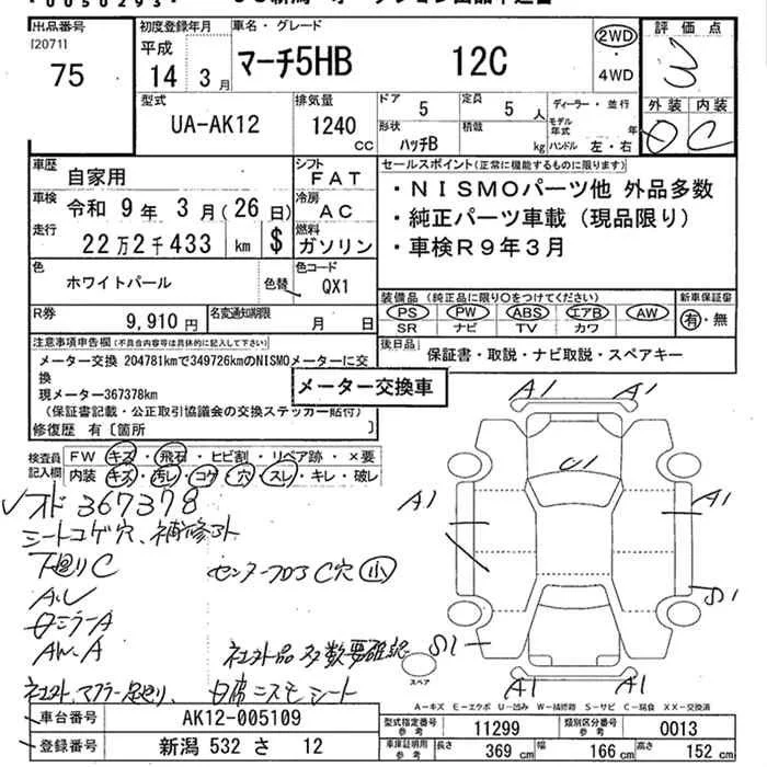 Nissan MARCH с аукциона Японии JU Niigata лот № 75