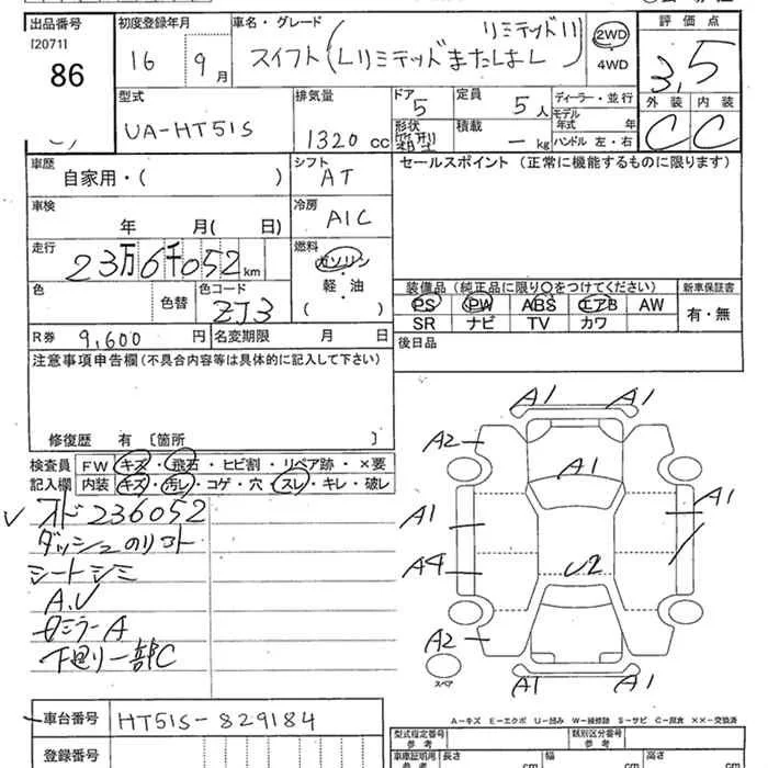 Suzuki SWIFT с аукциона Японии JU Niigata лот № 86