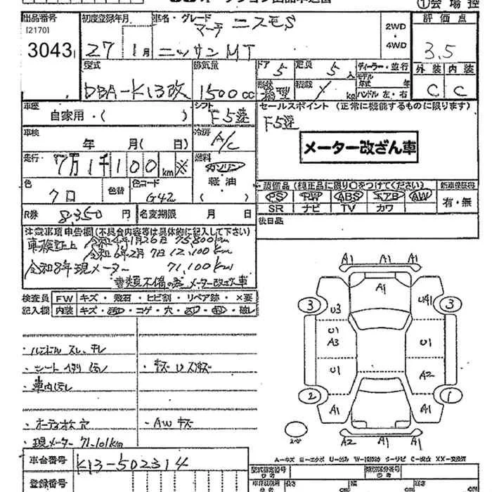 Nissan MARCH с аукциона Японии JU Tochigi лот № 3043