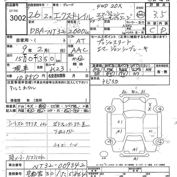 Nissan X-TRAIL с аукциона Японии JU Tochigi лот № 3002