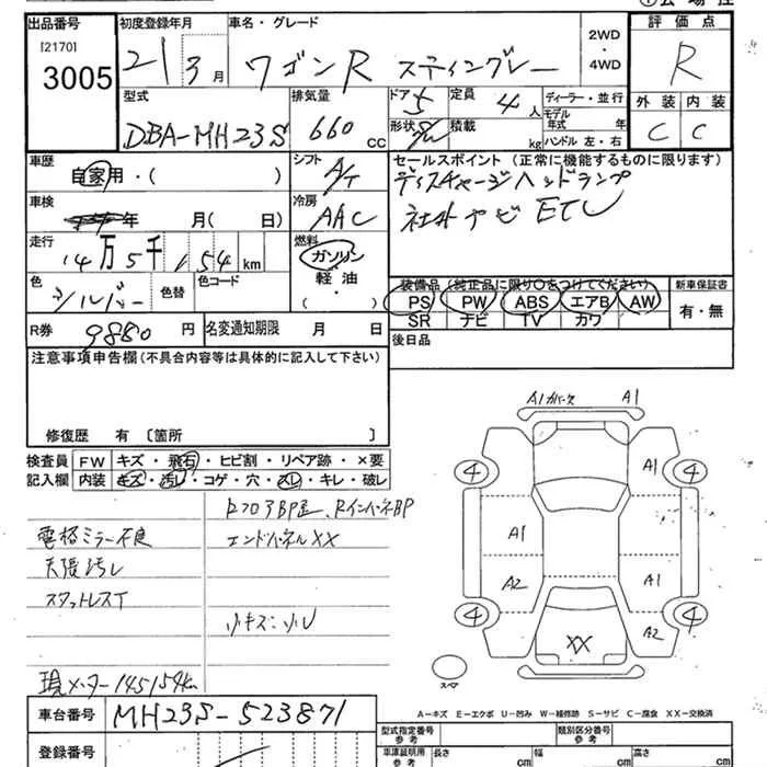 Suzuki WAGON R с аукциона Японии JU Tochigi лот № 3005