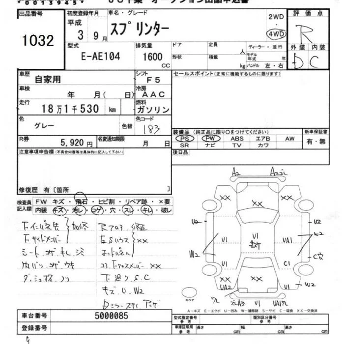 Toyota SPRINTER с аукциона Японии JU Chiba лот № 1032