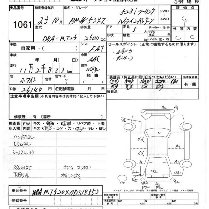 BMW 5-Series с аукциона Японии JU Chiba лот № 1061