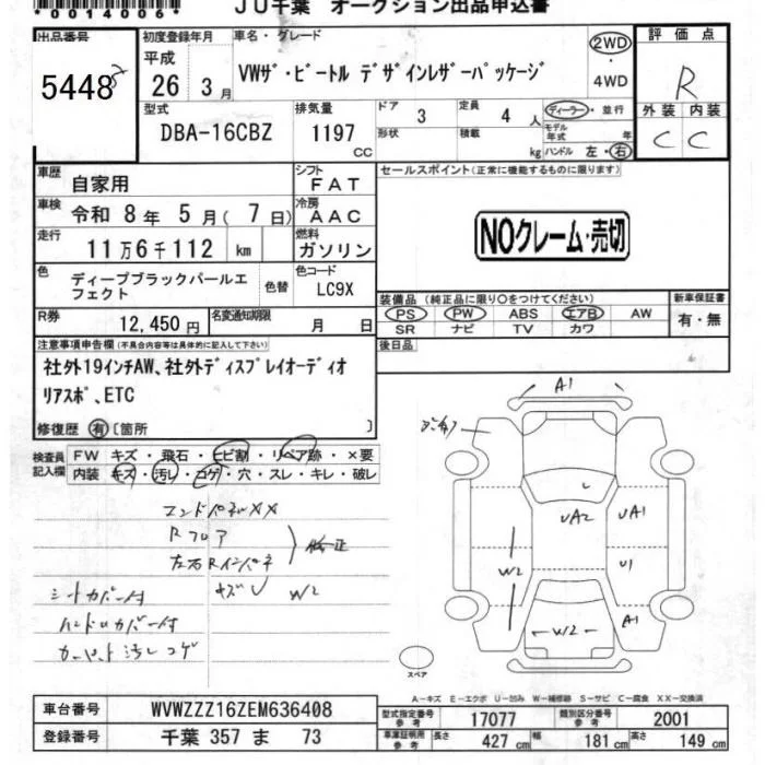 Volkswagen THE BEETLE с аукциона Японии JU Chiba лот № 5448