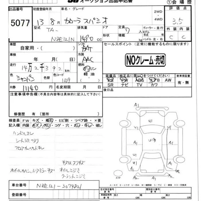 Toyota COROLLA SPACIO с аукциона Японии JU Chiba лот № 5077