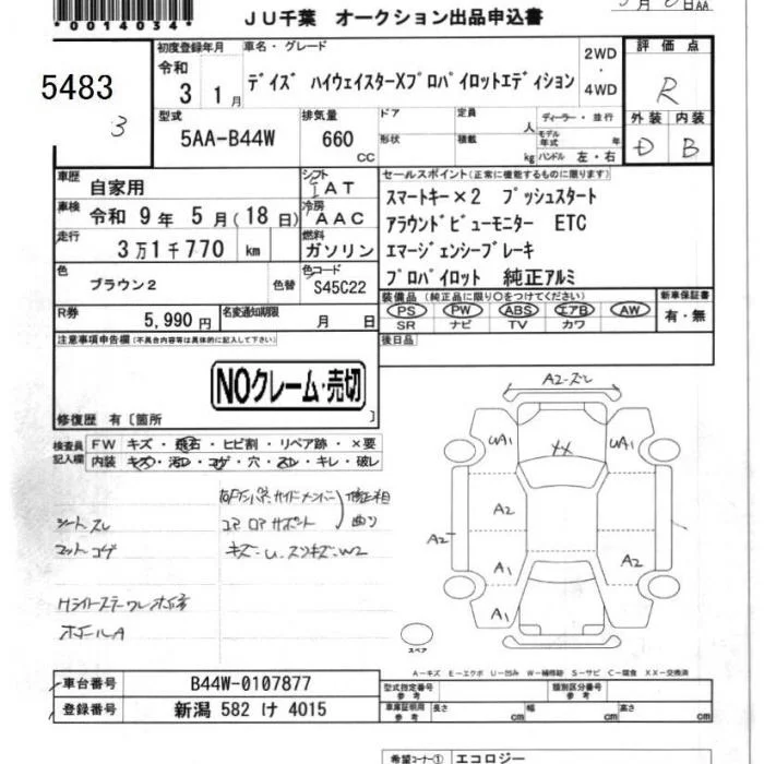 Nissan DAYZ с аукциона Японии JU Chiba лот № 5483