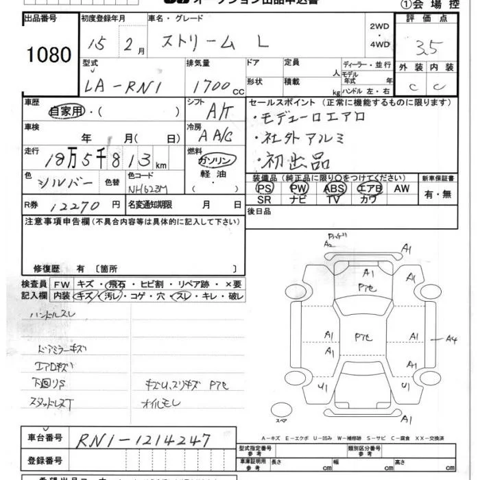 Honda STREAM с аукциона Японии JU Chiba лот № 1080