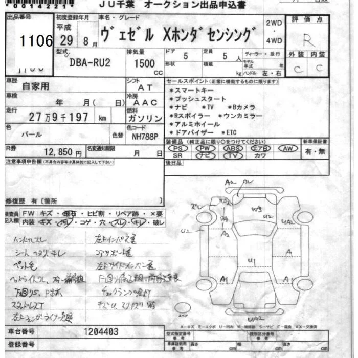 Honda VEZEL с аукциона Японии JU Chiba лот № 1106