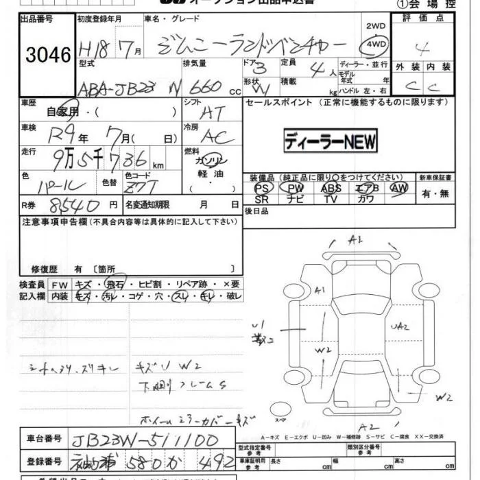 Suzuki JIMNY с аукциона Японии JU Chiba лот № 3046