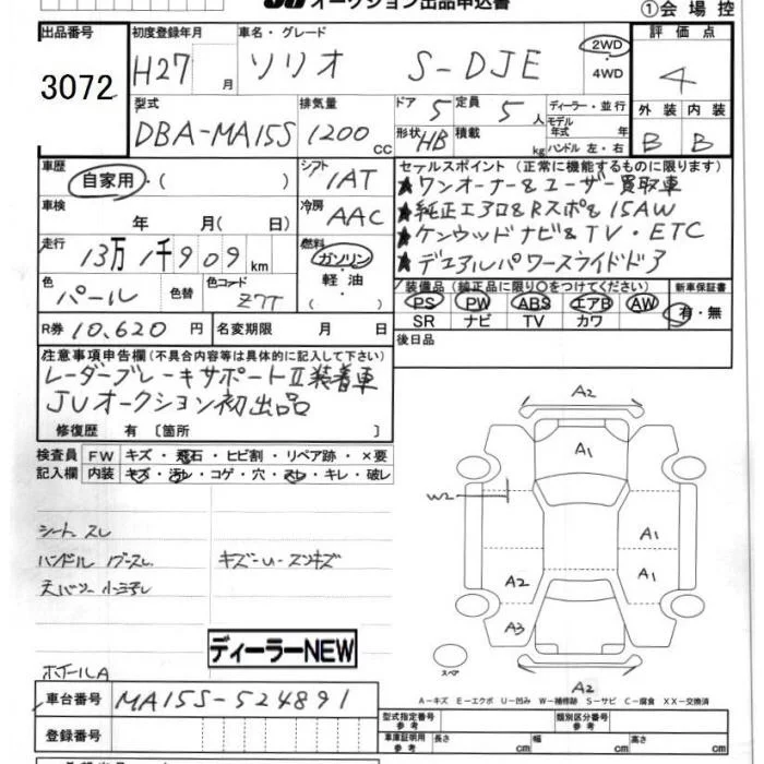 Suzuki SOLIO с аукциона Японии JU Chiba лот № 3072
