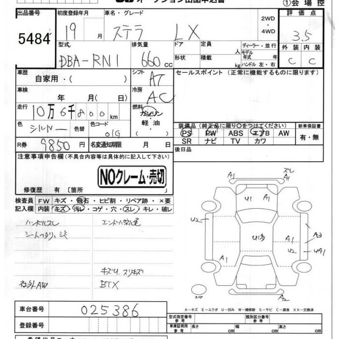 Subaru STELLA с аукциона Японии JU Chiba лот № 5484