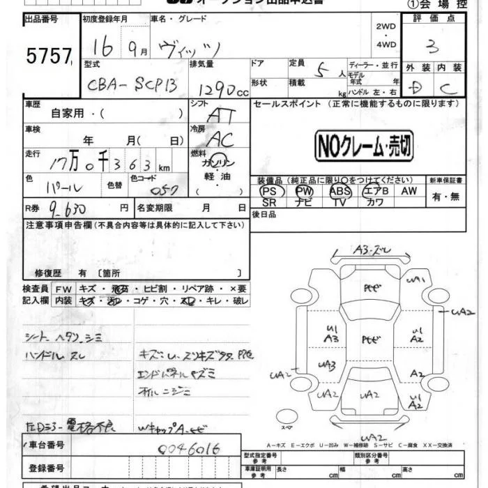 Toyota VITZ с аукциона Японии JU Chiba лот № 5757
