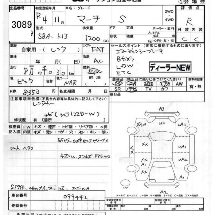 Nissan MARCH с аукциона Японии JU Chiba лот № 3089