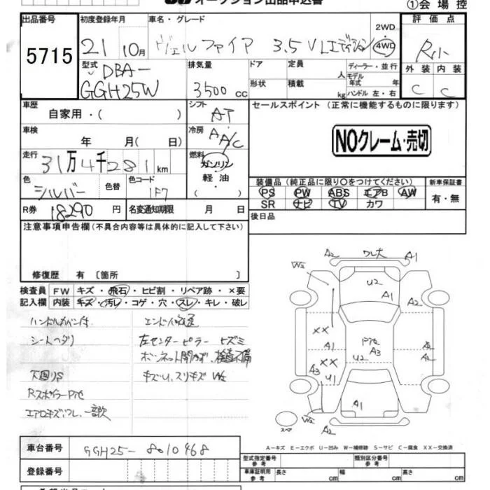 Toyota VELLFIRE с аукциона Японии JU Chiba лот № 5715