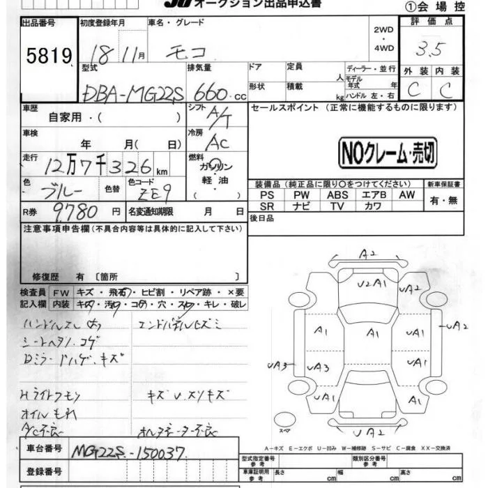 Nissan MOCO с аукциона Японии JU Chiba лот № 5819