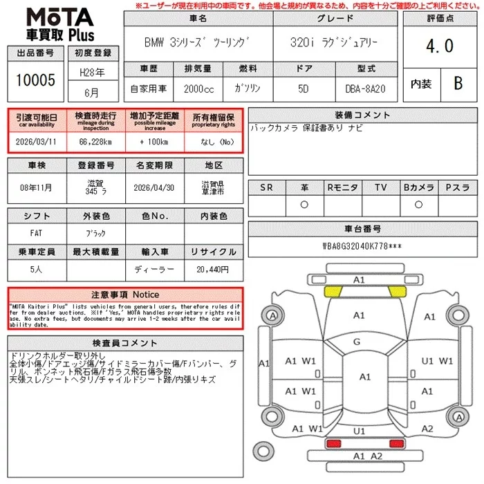 BMW 3-Series с аукциона Японии MOTA Kuruma Kaitori Plus лот № 10005