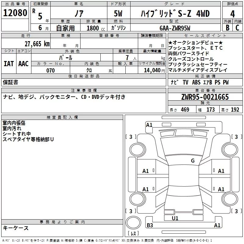 Toyota NOAH с аукциона Японии TAA Yokohama лот № 12080