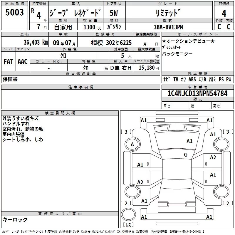 Chrysler JEEP RENEGADE с аукциона Японии TAA Yokohama лот № 5003