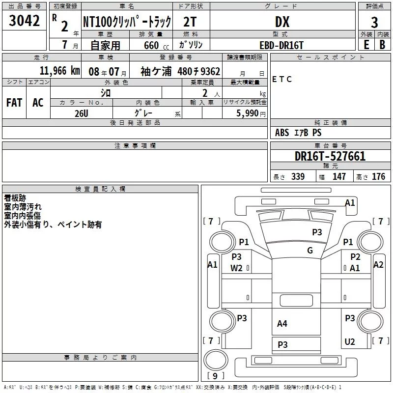 Nissan CLIPPER TRUCK с аукциона Японии TAA Yokohama лот № 3042
