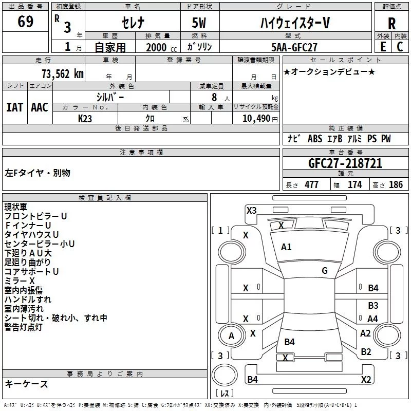 Nissan SERENA с аукциона Японии TAA Yokohama лот № 69