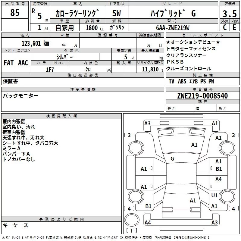 Toyota COROLLA TOURING с аукциона Японии TAA Yokohama лот № 85