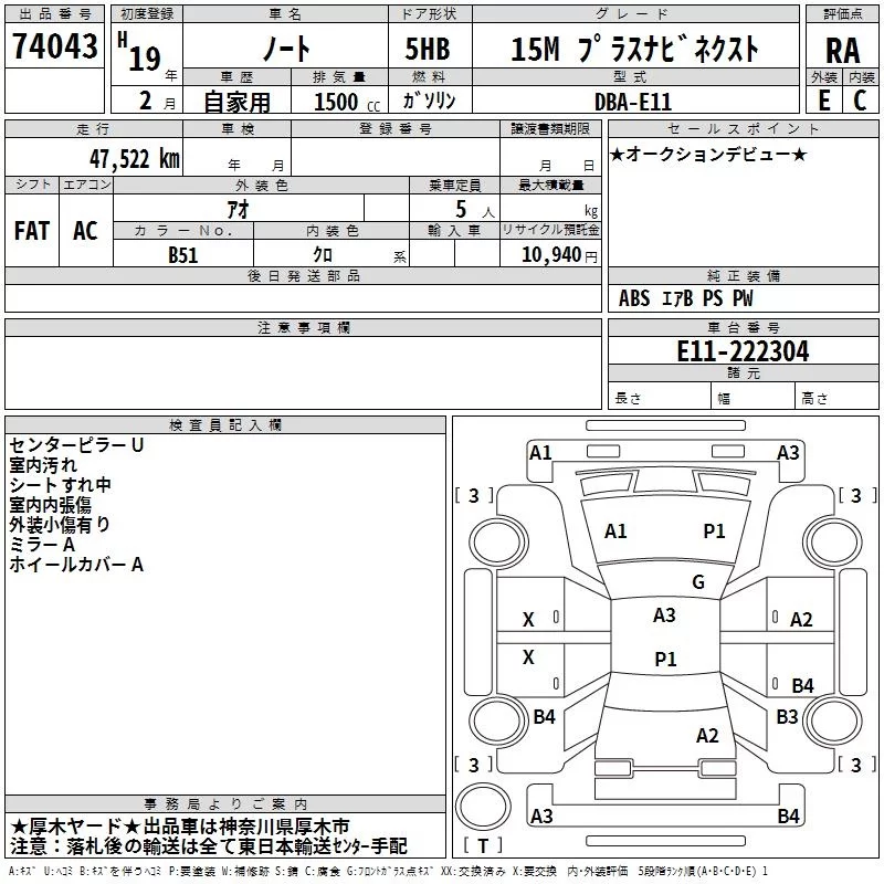 Nissan NOTE с аукциона Японии TAA Yokohama лот № 74043