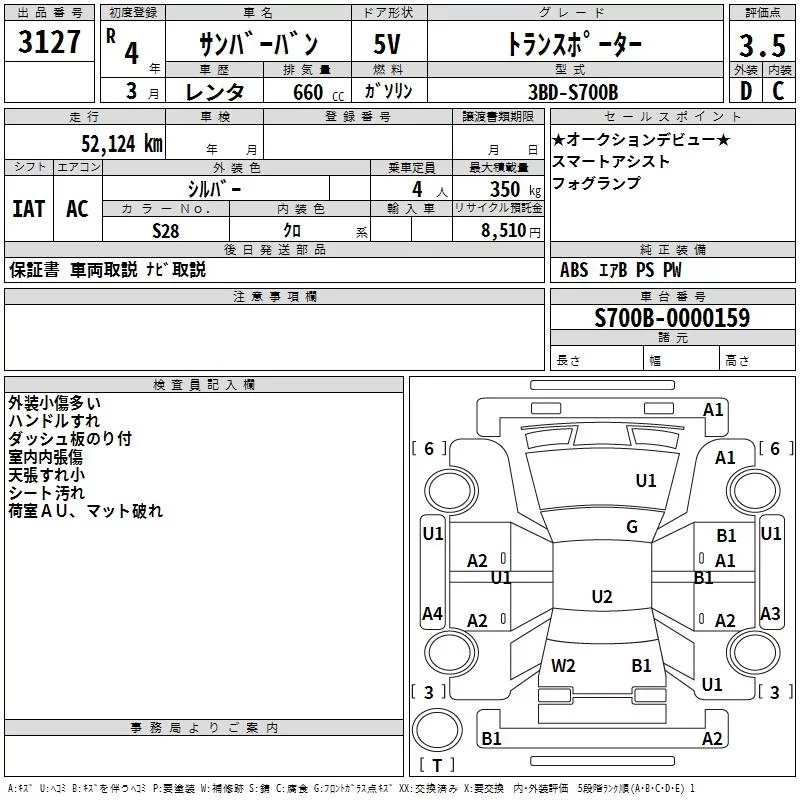 Subaru SAMBAR с аукциона Японии TAA Yokohama лот № 3127