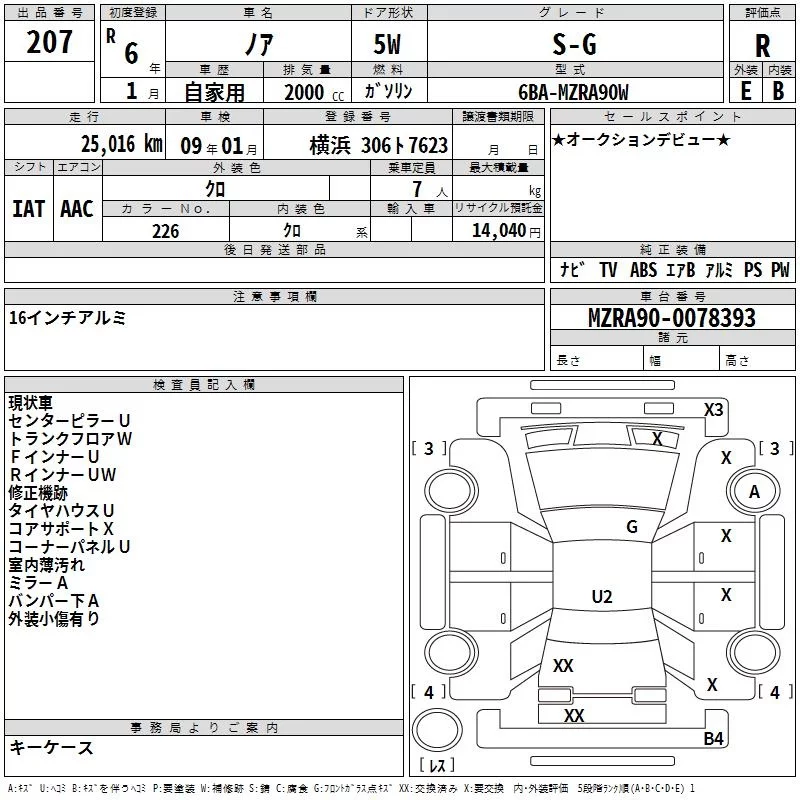 Toyota NOAH с аукциона Японии TAA Yokohama лот № 207