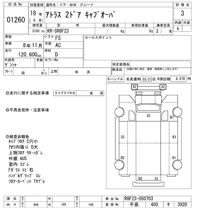 Nissan ATLAS с аукциона Японии ARAI Oyama VT лот № 1260