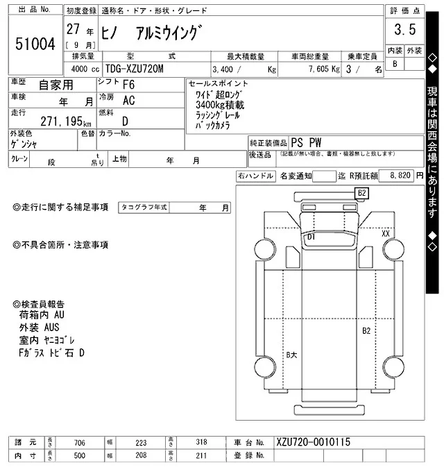 Hino DUTRO с аукциона Японии ARAI Oyama VT лот № 51004