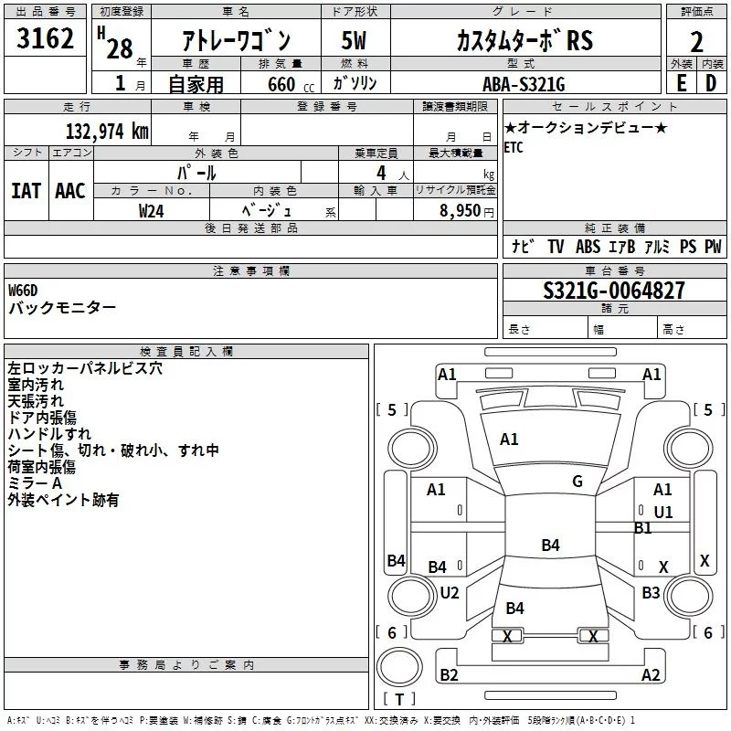 Daihatsu Atrai Wagon с аукциона Японии TAA Yokohama лот № 3162
