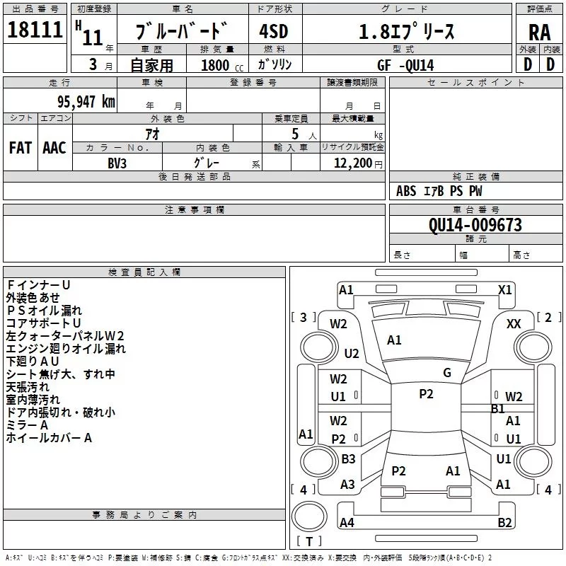 Nissan BLUEBIRD с аукциона Японии TAA Yokohama лот № 18111