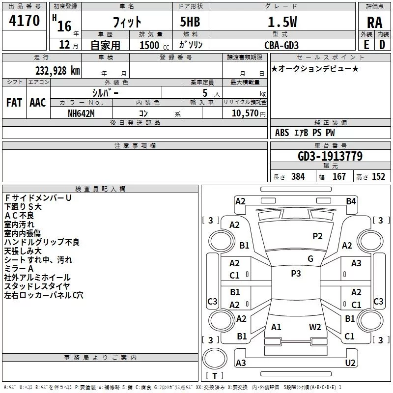 Honda FIT с аукциона Японии TAA Yokohama лот № 4170
