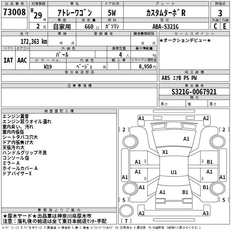 Daihatsu Atrai Wagon с аукциона Японии TAA Yokohama лот № 73008