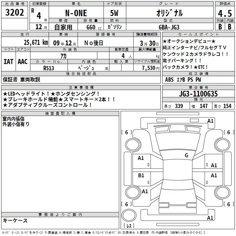 Honda N ONE с аукциона Японии TAA Yokohama лот № 3202