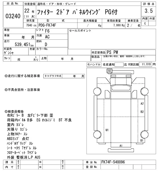 Mitsubishi FUSO FIGHTER с аукциона Японии ARAI Oyama VT лот № 3240
