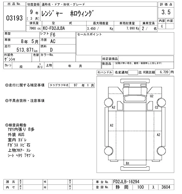 Hino RANGER с аукциона Японии ARAI Oyama VT лот № 3193