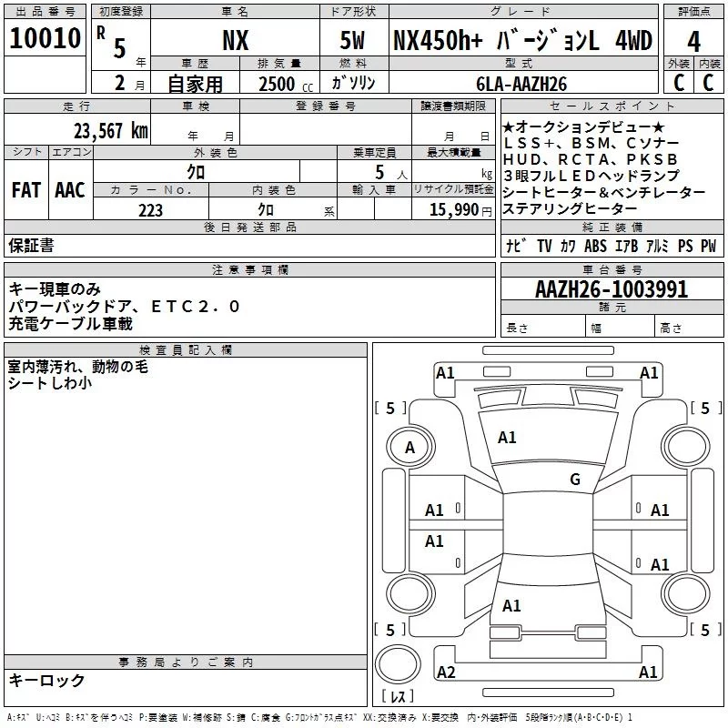 Lexus NX с аукциона Японии TAA Yokohama лот № 10010